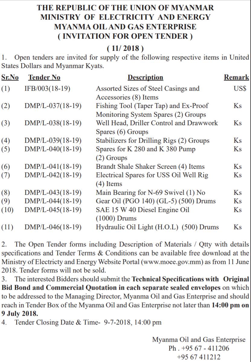联系地址:Managing Director, Myanma Oil and Gas Enterprise, No (44) Complex, Nay Pyi Taw, Myanmar